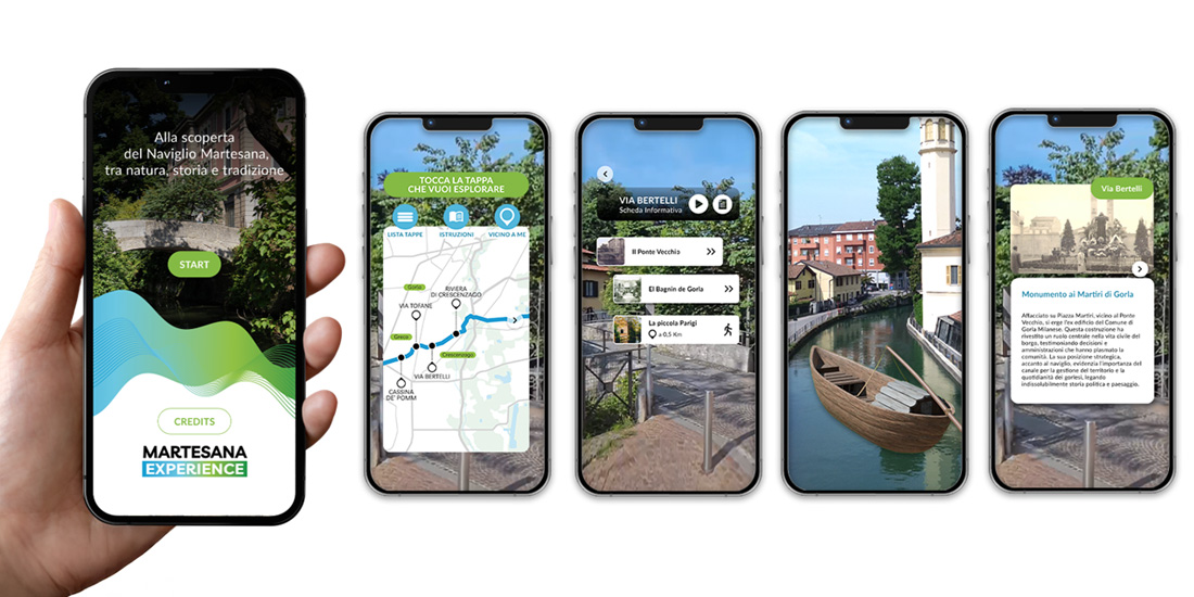Il progetto, finanziato dal Fondo Europeo di Sviluppo Regionale 2021/2027, ha previsto lo sviluppo i strumenti digitali innovativi per promuovere il turismo ambientale, culturale e gastronomico lungo il Naviglio Martesana, coinvolgendo l’Ecomuseo Martesana e i Comuni rivieraschi. È stata realizzata una piattaforma web esperienziale con video a 360°, una raccolta digitale ricca di contenuti per i visitatori, podcast dedicati alle memorie del territorio e un’ app di Realtà Aumentata bilingue. L’app permette di scoprire, attraverso 11 tappe suggestive, il Naviglio e le terre limitrofe grazie a contenuti multimediali e interattivi, ricostruzioni 3d approfondimenti.