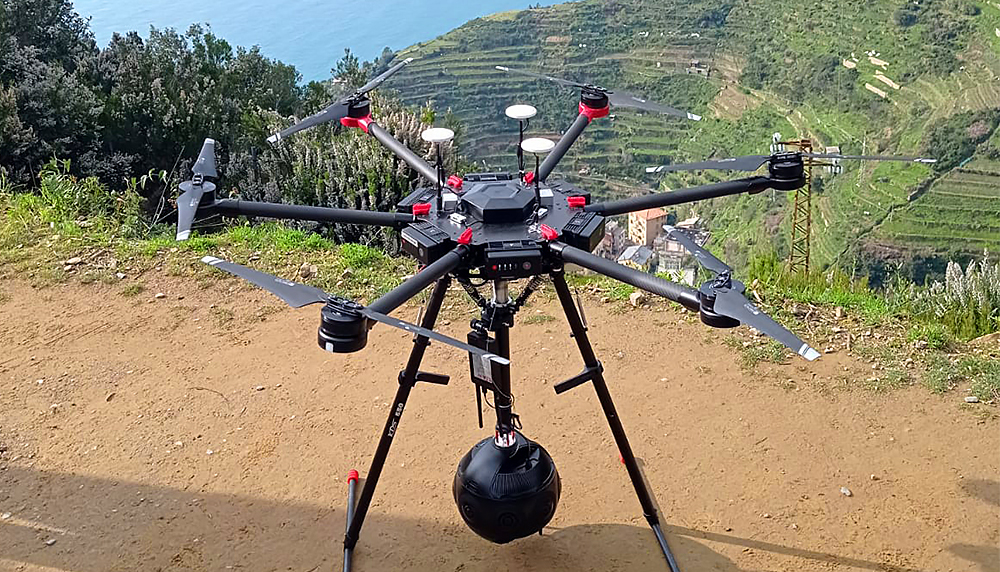 Utilizzo di dolly terrestri proprietari per riprese fluide a livello suolo e esacotteri/droni heavy-lift per riprese aeree stabili, eliminando vibrazioni e distorsioni ed offrendo scene con punti di vista e movimenti unici.
